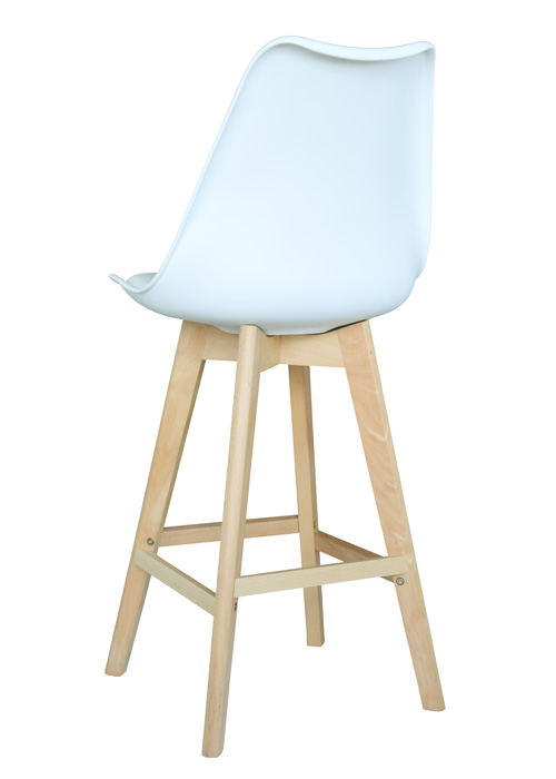 SILLA BAR EMA BLANCA ALCOLCHONABLE POLIPROPILENO PATAS MADERA